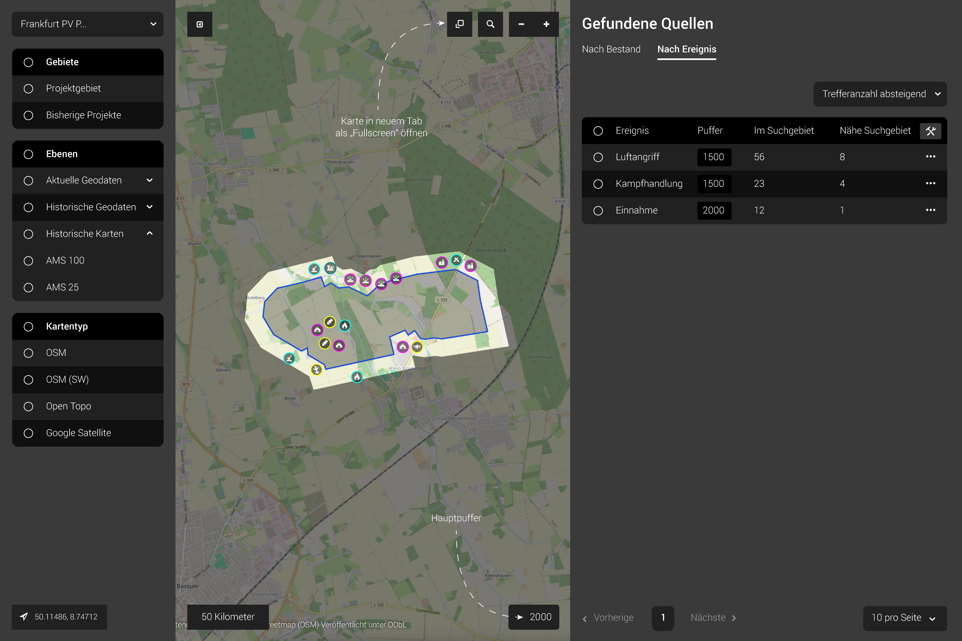 HiGRIS 2.0 ist ein intern genutztes Tool zur Verwaltung von Luftbilddaten. Neben einer umfassenden Verwaltung für Projekte sowie einer umfangreichen Suche über eine Vielzahl an Informationen unterschiedlicher Typen, erzeugt das Tool am Ende einen Export, der ein detailliertes Gutachten zu einem definierten Projektgebiet enthält.